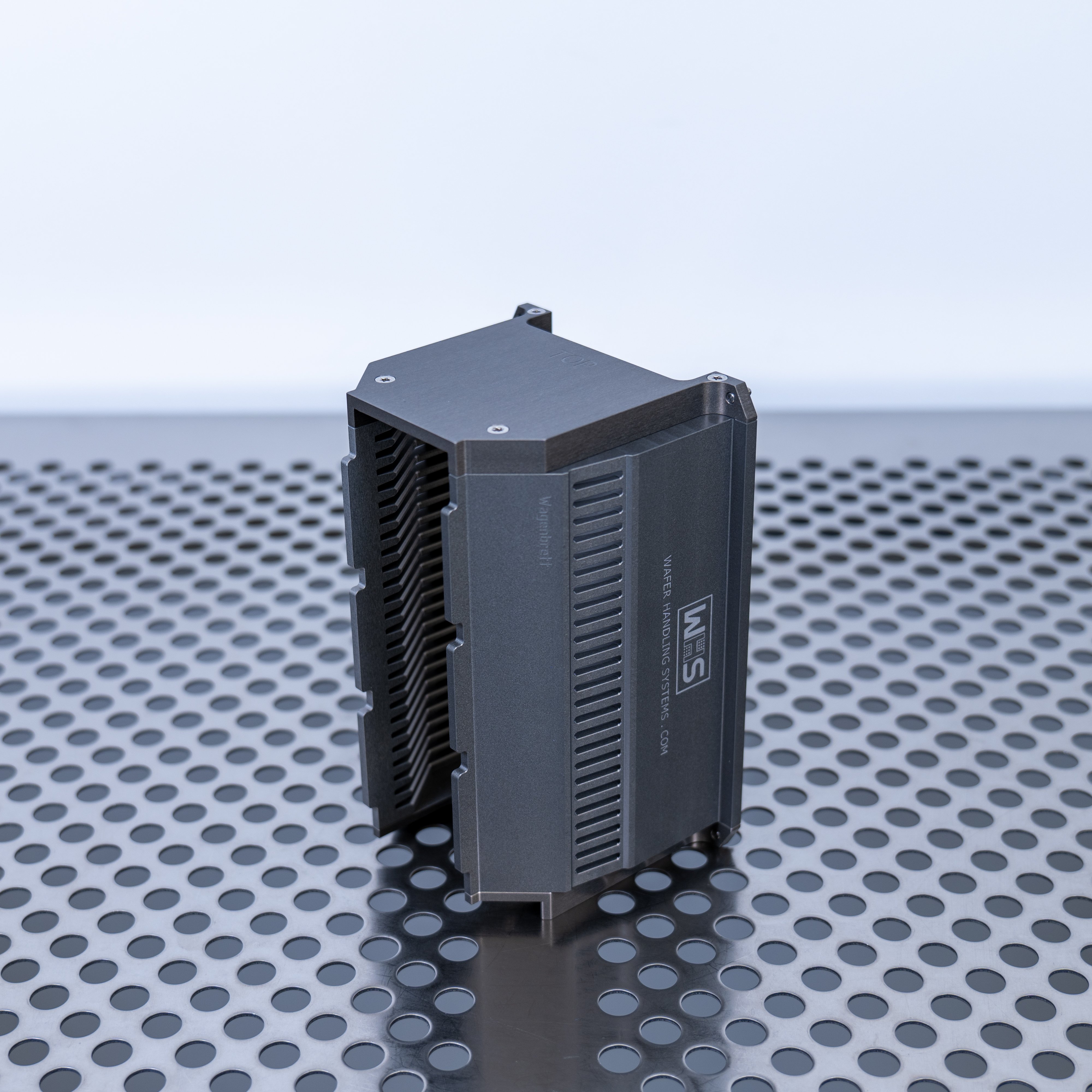 The M1 series is an all aluminum 76 mm (3") 25-slot metal cassette for processing semiconductor wafers in a thermal environment, up to 350° C. A SEMI compliant cassette with outside dimensions and 8° angular slots similar to an industry standard plastic cassette for easy integration into stage and transfer automation considerations. All aluminum surfaces are (HC) hard clear anodized for prolonged abrasion resistance.