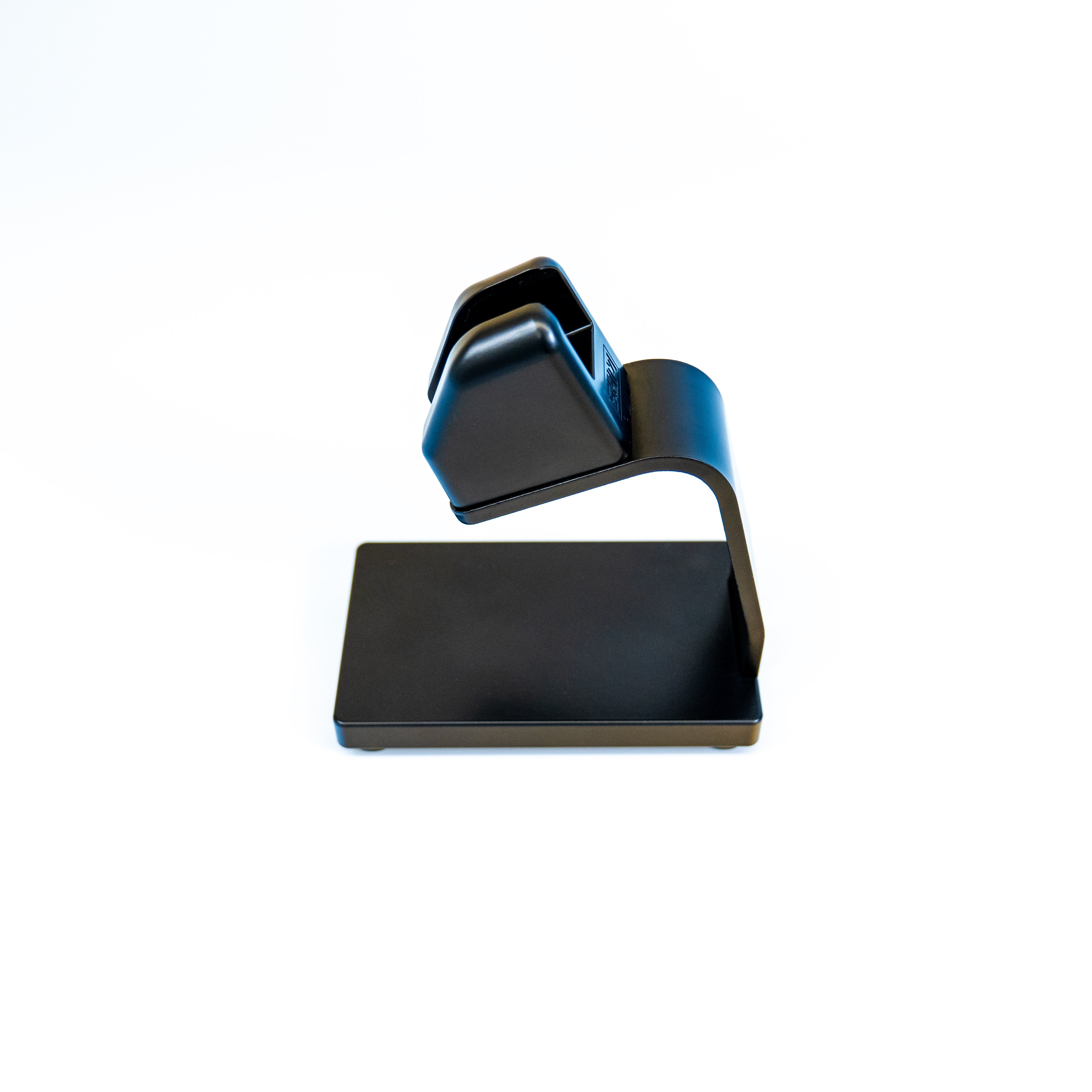 The WHS-V4-TT is an universal pedestal vacuum wand holder for all normally open wand installations. Ergonomic angled table-top design features heavy base to weigh down the holder and prevent sliding. Black antistatic polycarbonate (PC) and heavy black powder coated steel plate construction. ISO Class 3.