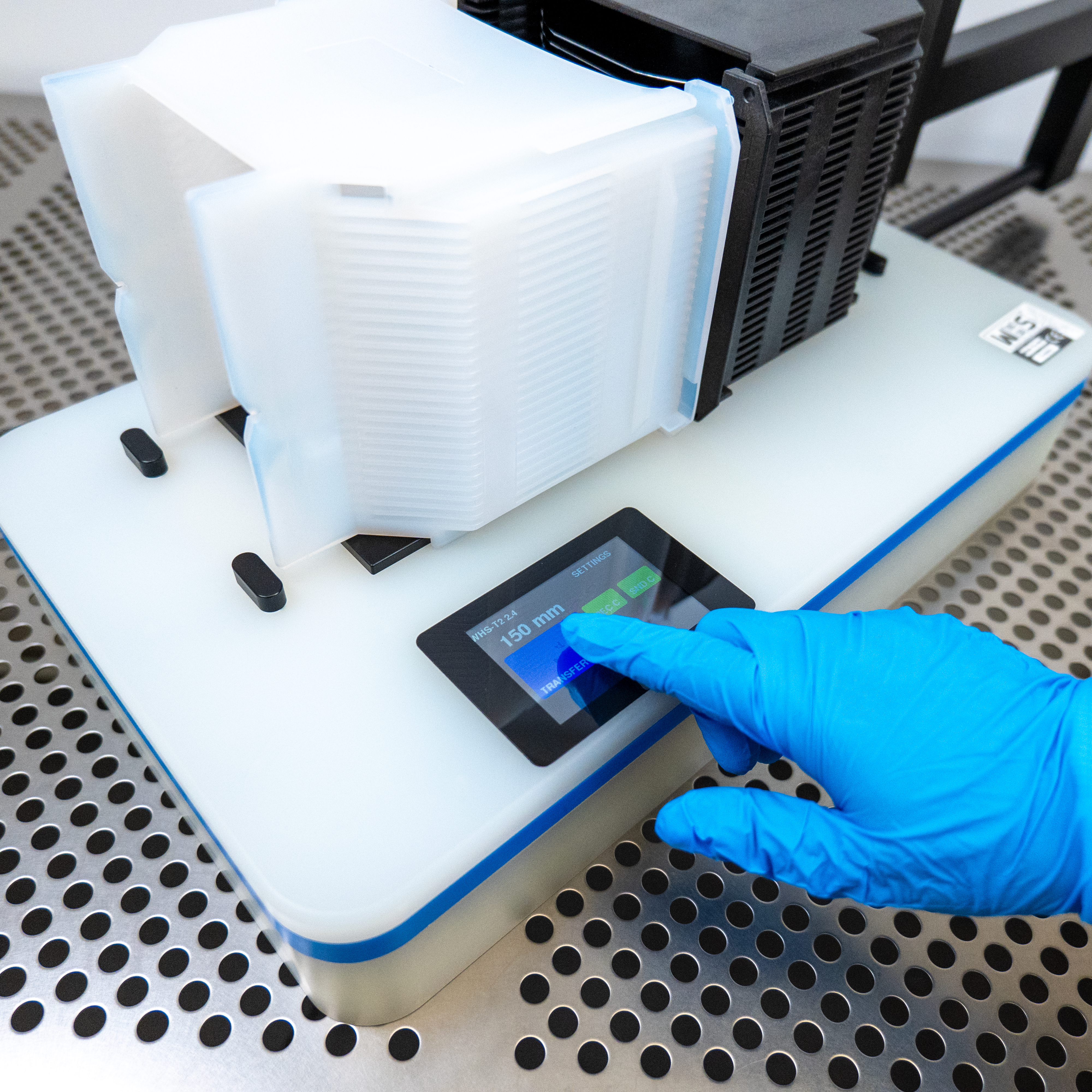 The WHS-T2 comes equipped with a touchscreen display for intuitive control, integrated SEND and RECEIVE stage cassette-in-place sensors, and an adjustable transfer arm resistance sensor to detect excessive forces during motion—safeguarding wafer integrity.