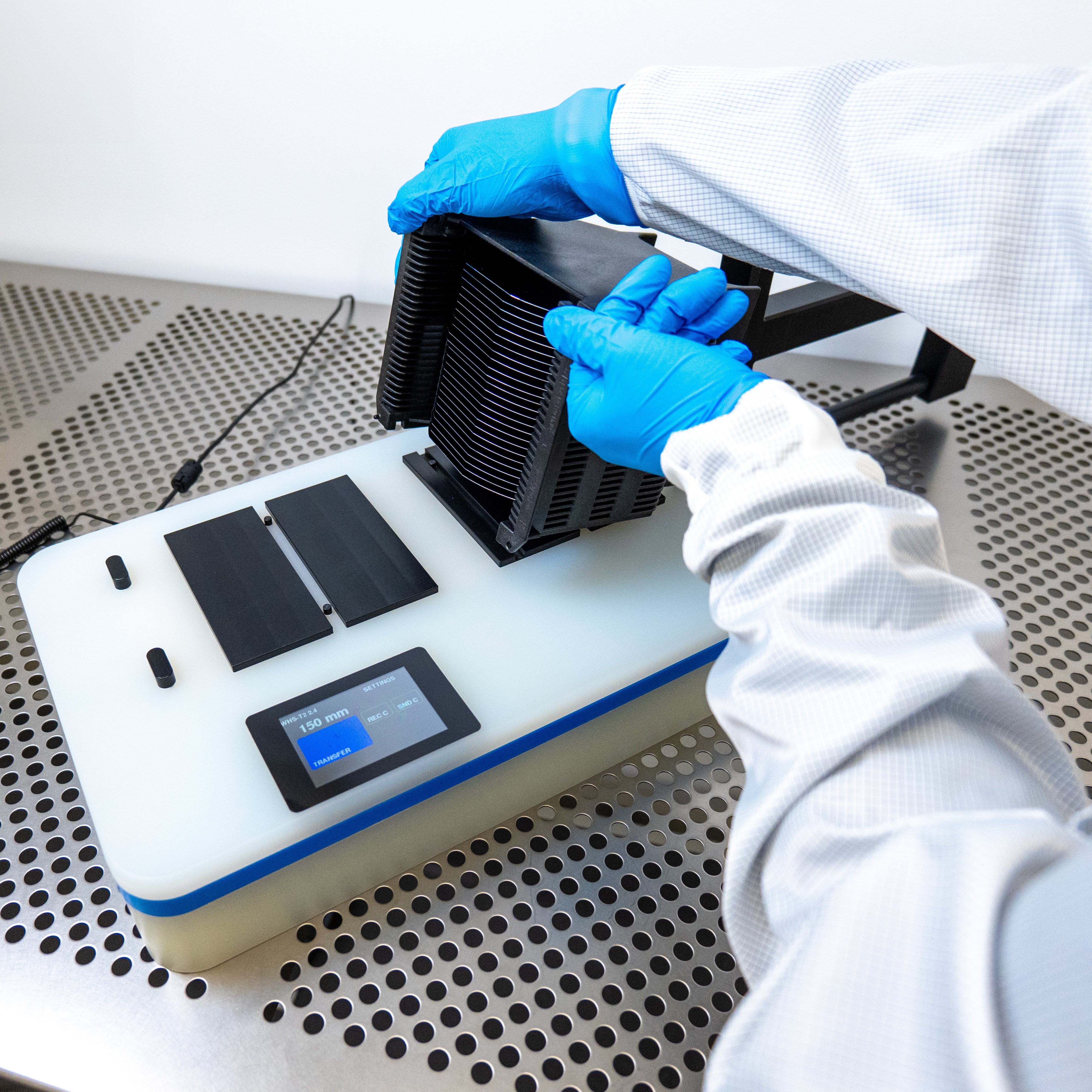 - Wet chemistry areas: Wafer transfers are used to move wafers between a WIP production cassette to a wet process Teflon PFA cassette when they enter wet chemistry areas.