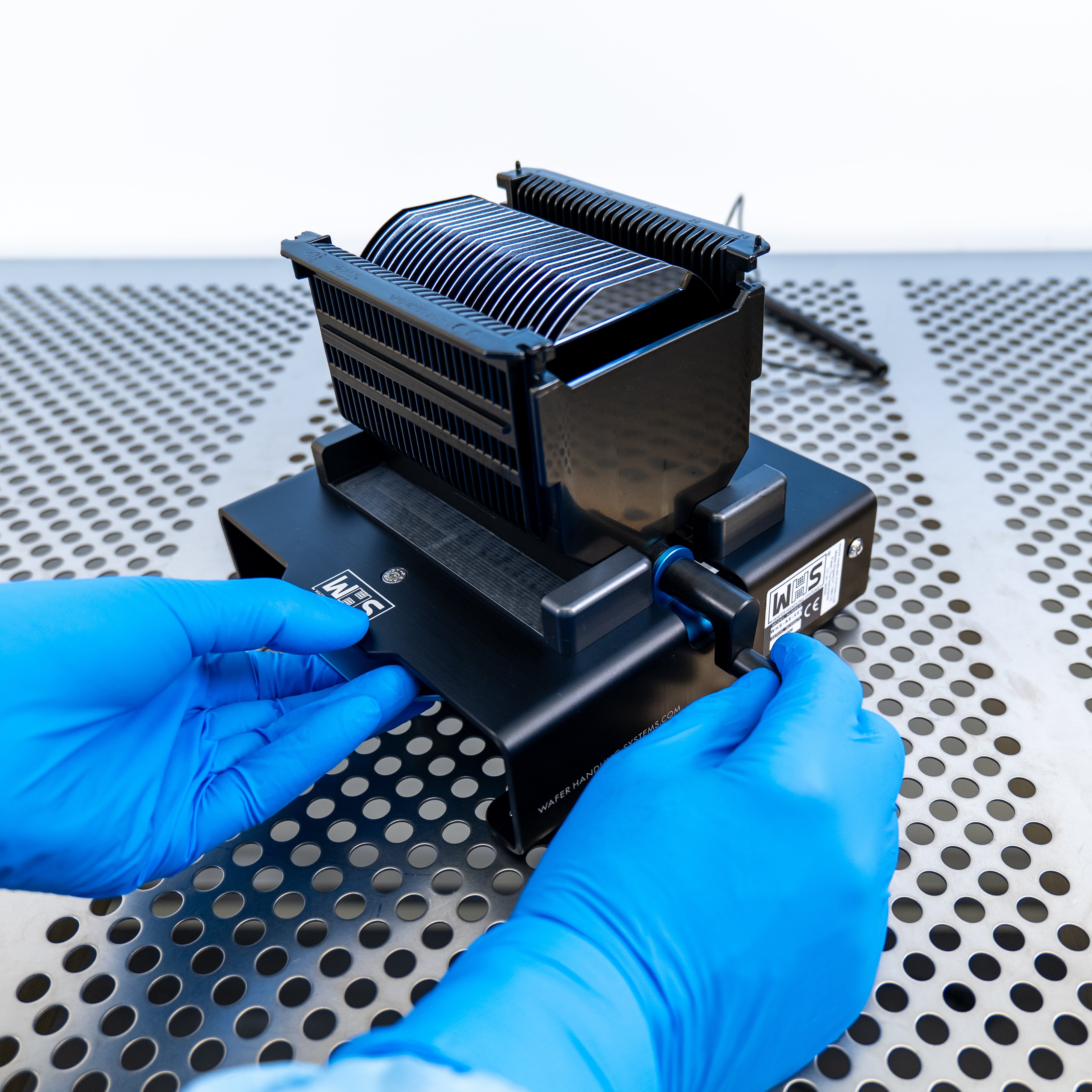 Built for SEMI-compliant wafer cassettes, the WHS-A6 features advanced abrasion-resistant and static dissipative stage and roller materials. Its antistatic design protects sensitive wafers by grounding both the wafer and cassette, providing reliable ESD protection in cleanroom environments.