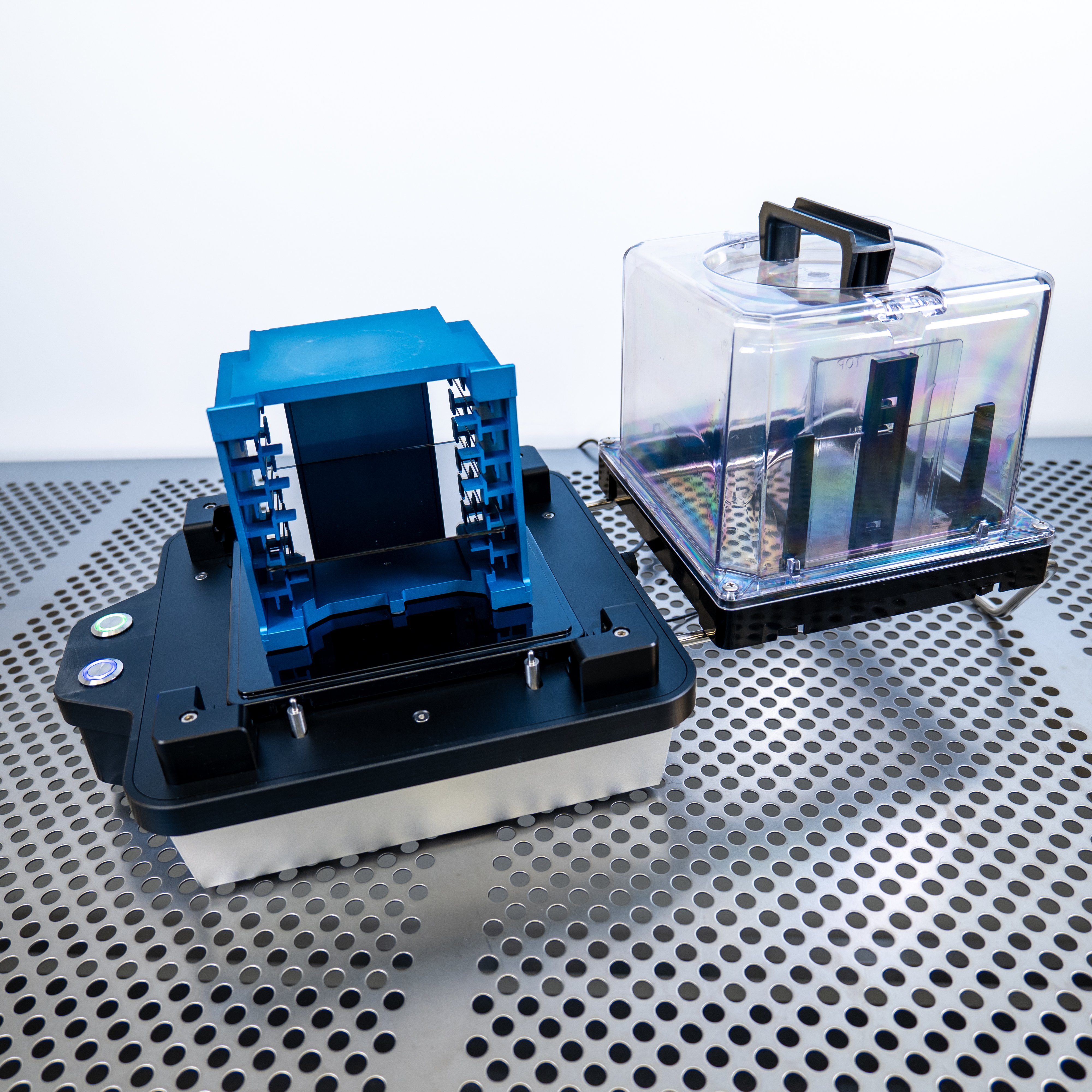 The WHS-O2-RSP150 is a semi-automatic pod opener designed to elevate mask-handling processes for RSP150 reticle SMIF pods. This cutting-edge device simplifies the handling of pods with its single-touch operation button, ensuring ease of use and maximum safety. A simple press of the button effortlessly unlocks the pod, allowing the operator to manually lift the lid for quick access to the enclosed mask. The pod is securely sealed by pressing the button again, engaging the motorized mechanism to lock the lid in place. Engineered with antistatic and abrasion-resistant materials, the WHS-O2 guarantees the utmost protection for your valuable masks, combining efficiency, user-friendliness, and enhanced safety.