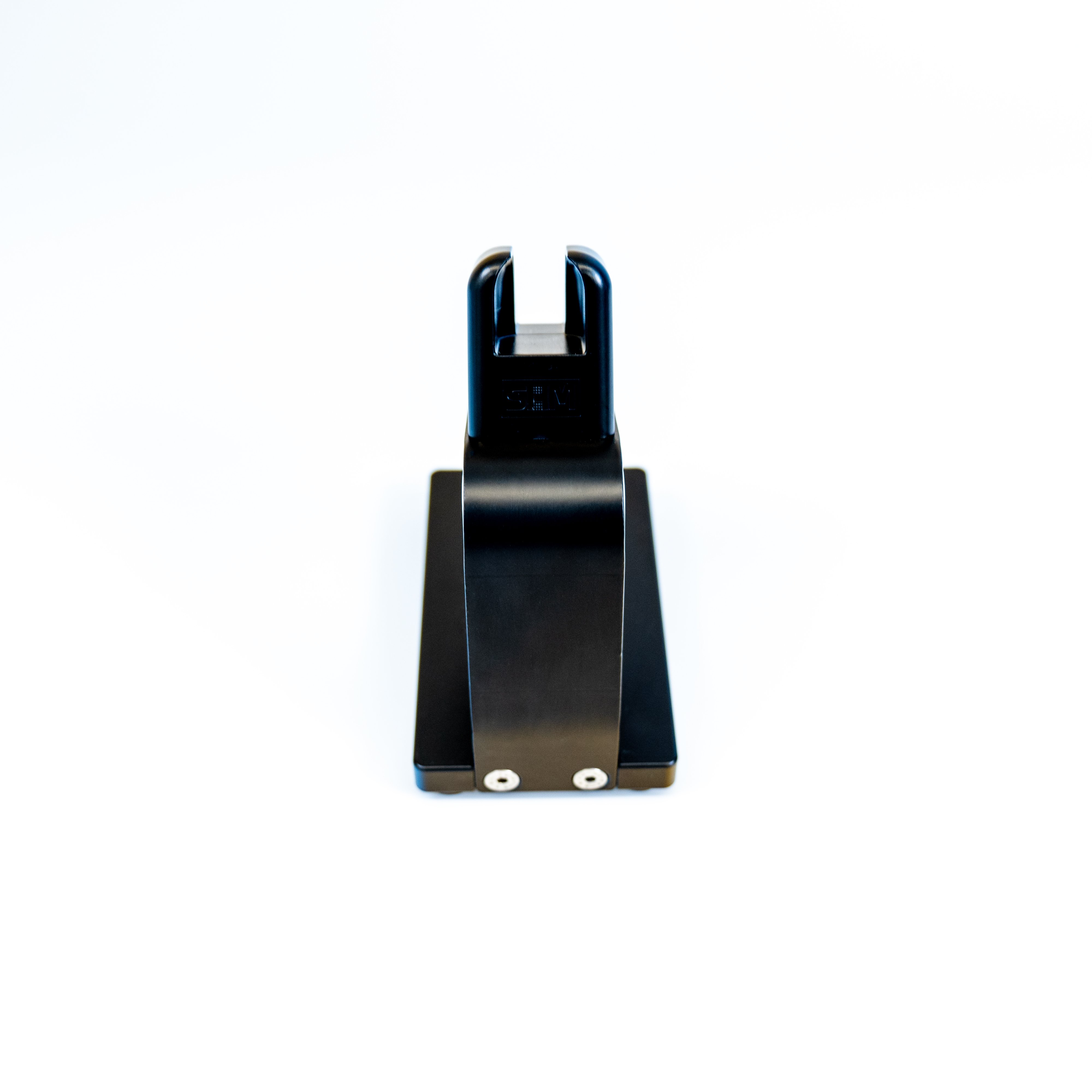 The WHS-V4-TT is an universal pedestal vacuum wand holder for all normally open wand installations. Ergonomic angled table-top design features heavy base to weigh down the holder and prevent sliding. Black antistatic polycarbonate (PC) and heavy black powder coated steel plate construction. ISO Class 3.