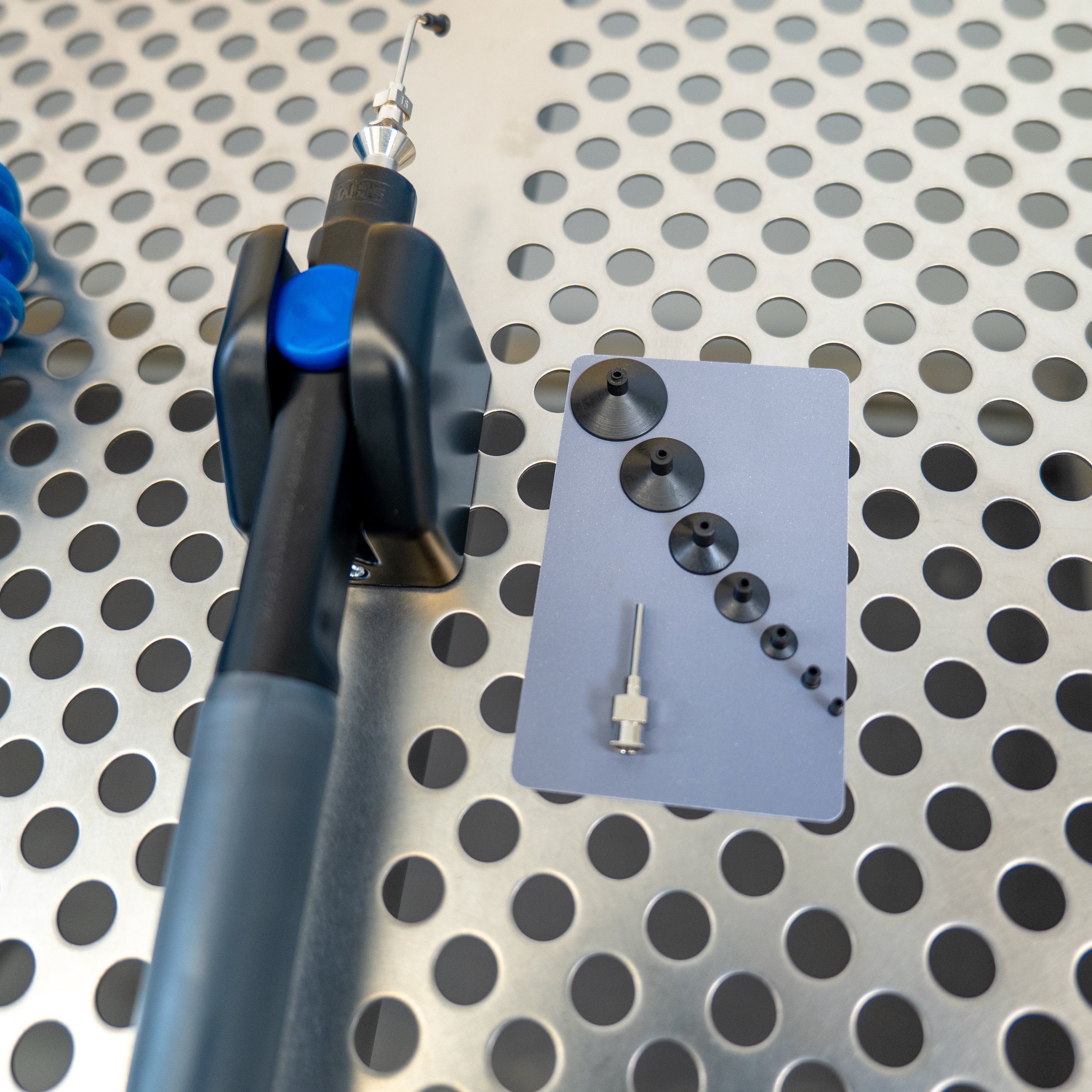 The WHS-V2 is an prepackaged vacuum wand set includes everything needed to start handling small devices safely using a house vacuum. Assembly includes: Nitrile Buna-N Cup Variety Kit (WHS-V8-NBKIT), wand (WHS-V2-SD), coil cord (WHS-V3-CC), holder (WHS-V4-WM). Antistatic construction, > 800mBar (23" Hg) recommended. ISO Class 4